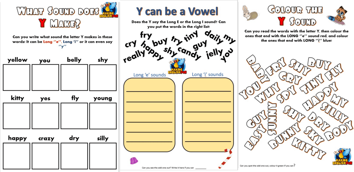 Y As A Vowel Activities : Vowel Sounds Of Y Teaching Resources :